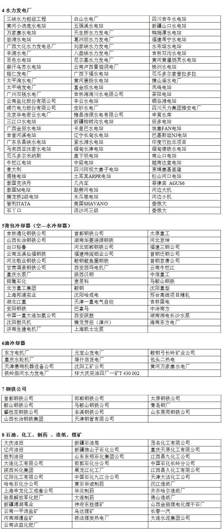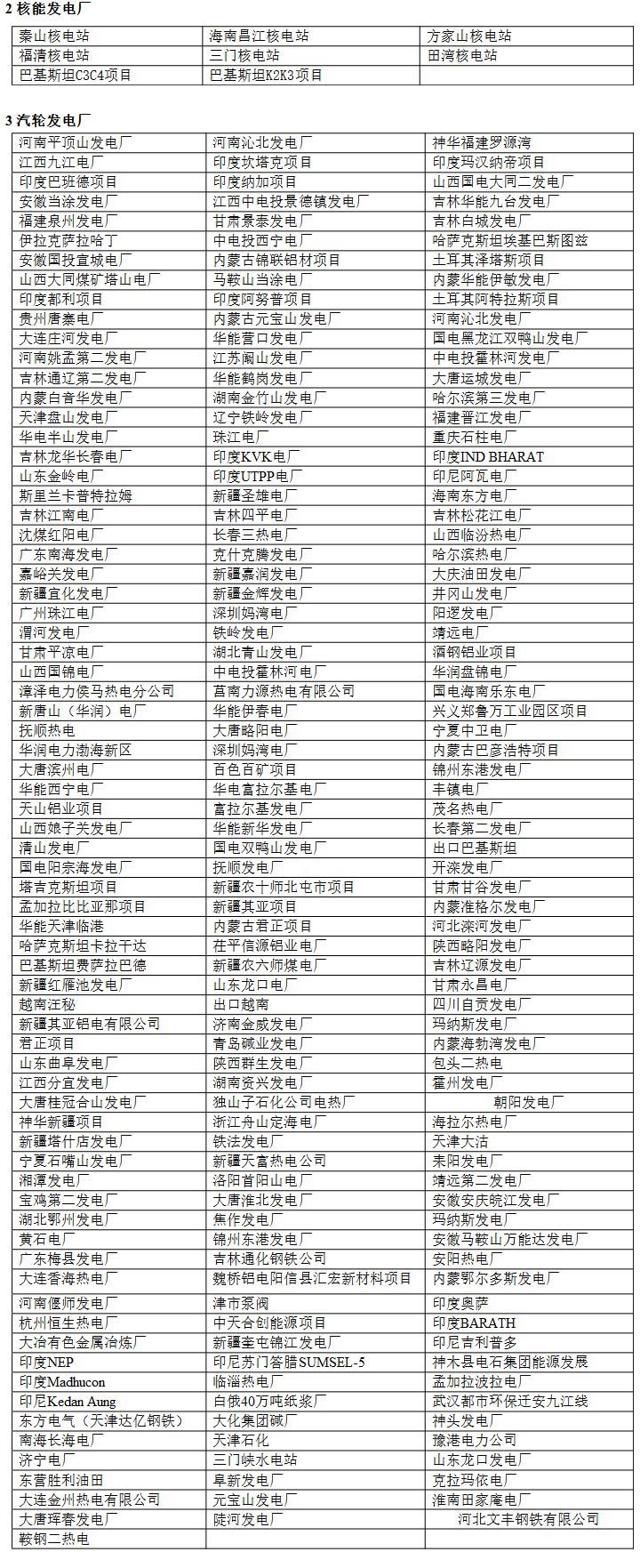 1、哈爾濱電機(jī)廠  2、 杭州發(fā)電設(shè)備廠    3、東方電機(jī)廠    4、北京重型電機(jī)廠    5、天津發(fā)電設(shè)備廠    6、東風(fēng)電機(jī)廠       7、沈陽電機(jī)廠       8、西安西瑪電機(jī)廠    9、南京汽輪電機(jī)廠      10、 昆明電機(jī)廠      11、濟(jì)南生建電機(jī)廠      12、重慶水輪機(jī)廠